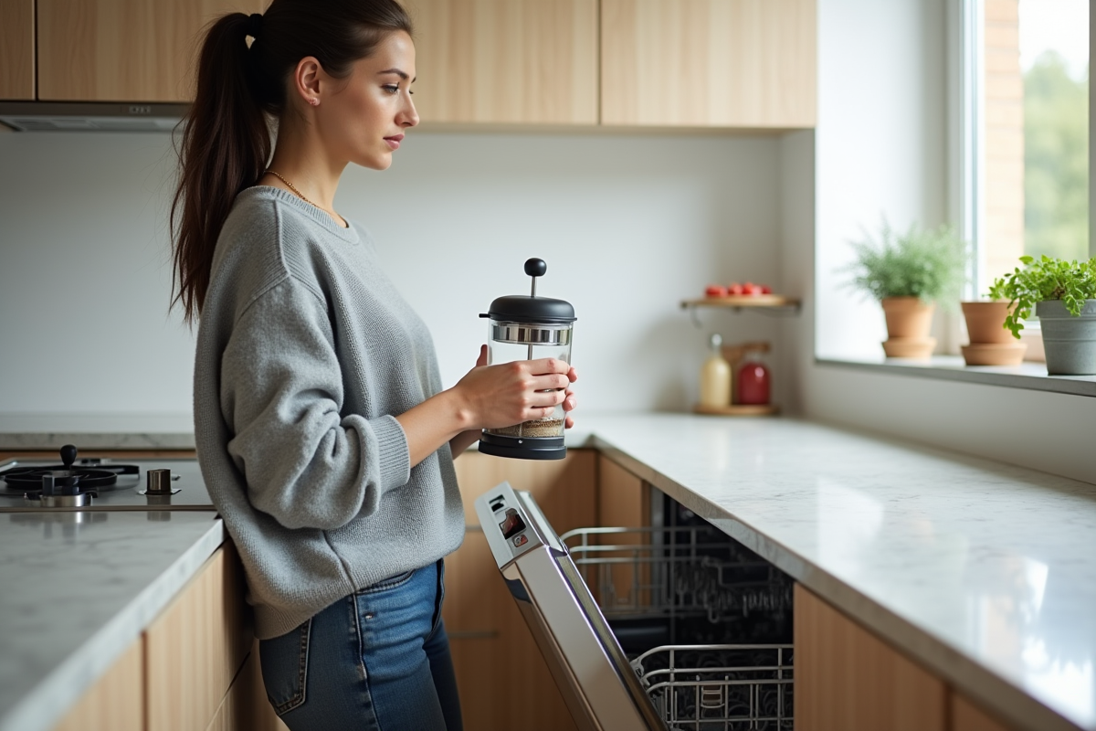 Sur l’emballage, la mention “compatible lave-vaisselle” apparaît souvent. Pourtant, placer sa cafetière piston Bodum dans la machine n’a rien d’automatique. Si le verre borosilicate semble tenir le choc face aux brusques variations de température, la réalité du lavage en machine peut parfois réserver de mauvaises surprises.